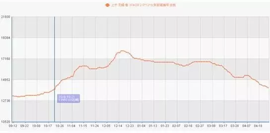 上图分别是无锡市场304冷热轧近两个月的下跌行情走势图,从价格数据可以看到,从3月初至今,冷轧下跌幅度已达2600元/吨,热轧跌幅2300元/吨,价格水平已经回落至去年10月下旬的水平,而这基本已经把去年的两波大牛行情的涨幅全数跌尽。